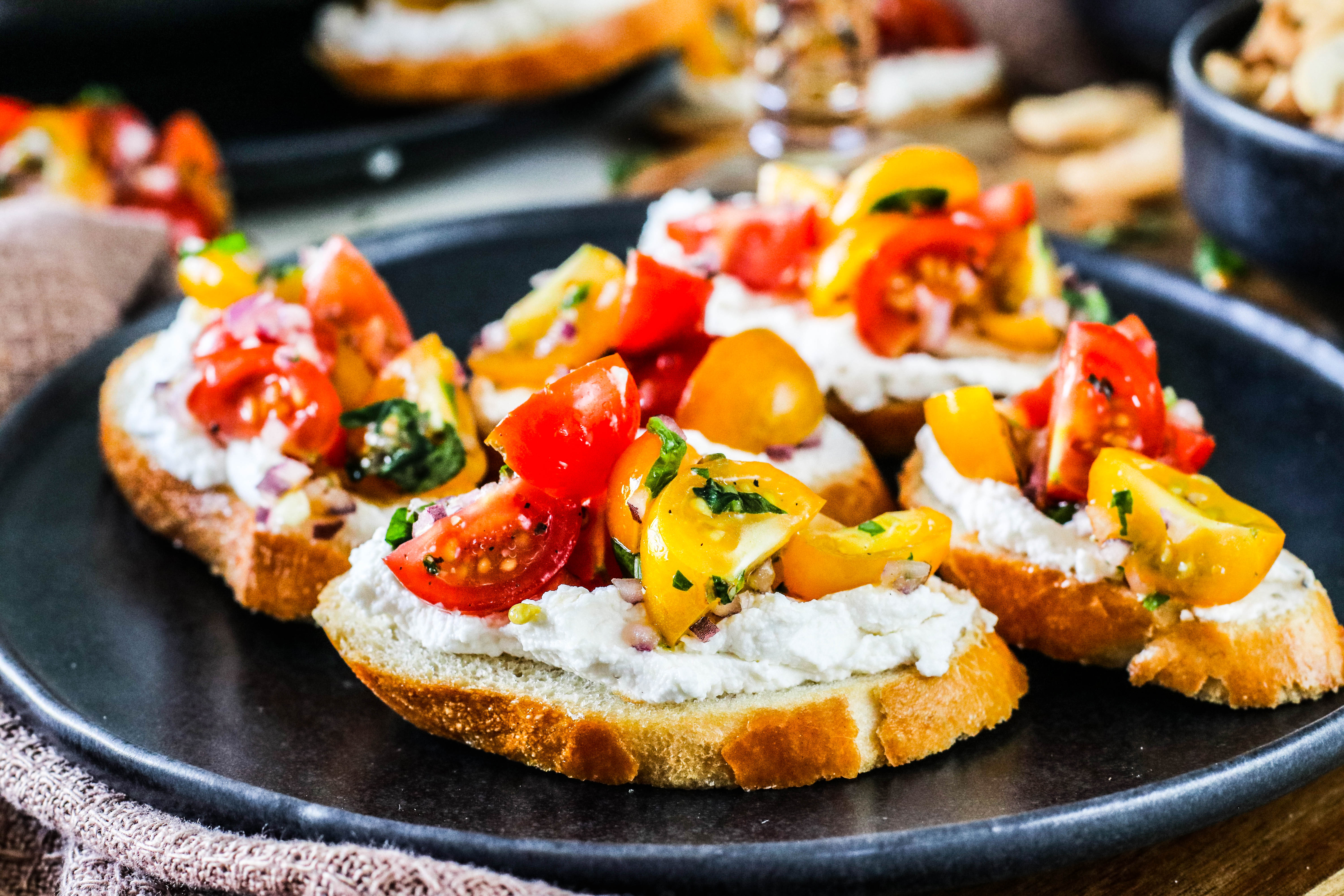 Bruschettur með rjómaosti og ofnbökuðum tómötum Hráefni 1 baguette brauð, ég keypti