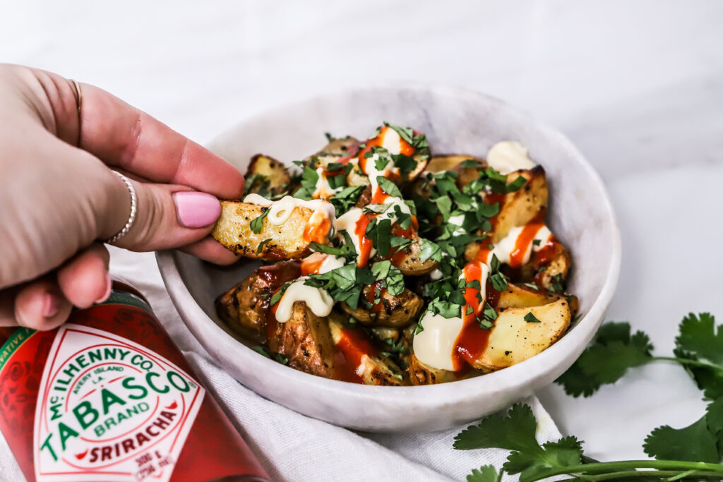 Dreifið majónesi, sriracha sósu og kóriander yfir þær eftir smekk.